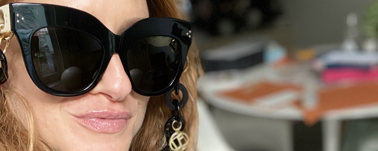 Ik vind deze look echt heel cool. Omdat hij zo opvallend is en je echt moet durven. Heel stoer, ik moet meteen aan binnenhuisarchitect en stijlicoon Iris Apfel denken! Ik heb zelf ook de proef op de som genomen en loop er thuis graag mee rond. Maar buiten, op straat? Ik weet het niet. Hoe dan ook is de trend heel praktisch: je bril valt niet op de grond! En heb je hem niet nodig, dan laat je hem gewoon om je nek hangen. Maar dat kan dus alleen als je de ketting om je hals draagt ​​en je hem niet, zoals op de catwalk, aan de voorkant vastmaakt.